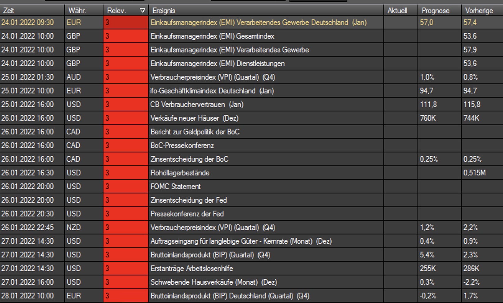 Wichtige Termine für die kommende Woche:
