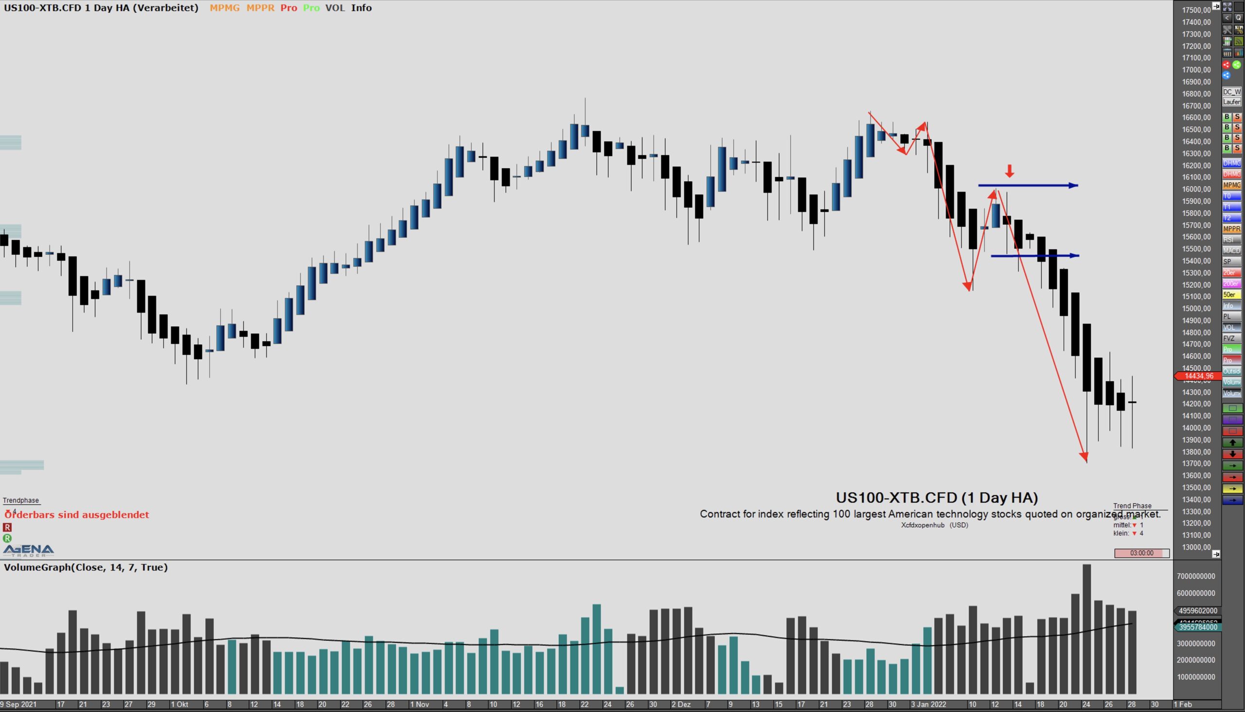 Wir haben einen aktiven Down-Trend und dieser hat auch nach Regelwerk funktioniert! Zum jetzigen Zeitpunkt befinden wir uns in der Bewegung.