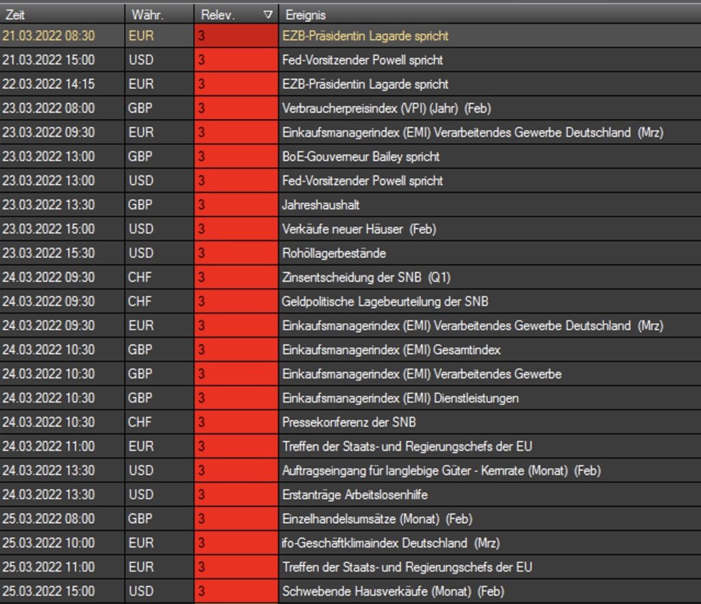 Die Anleger suchen nach Orientierung vor allem das große Kapital, steht an der Seitenlinie und hält die Füße still. Die Ukrainekrise hinterlässt bei den Börsenteilnehmen zu nehmend Zweifel, denn wer dachte, dass dieser Konflikt schnell vorüber geht, der wurde jetzt eines besseren belehrt. Russland hat erst mal kein Interesse an einer Einigung und dies sorgt für zunehmend viel Nervosität am Markt und viele Bleiben flat. Der Dax konnte sich behaupten und schloss mit einem Wochenplus. Dennoch hinterlässt dieser Konflikt Spuren in der deutschen Wirtschaft, es geht um eine zunehmende Inflation, steigende Energiepreise, Abbau von Arbeitsplätzen und Lieferengpässe durch mangelnde Versorgung der Produzenten mit Rohstoffen.