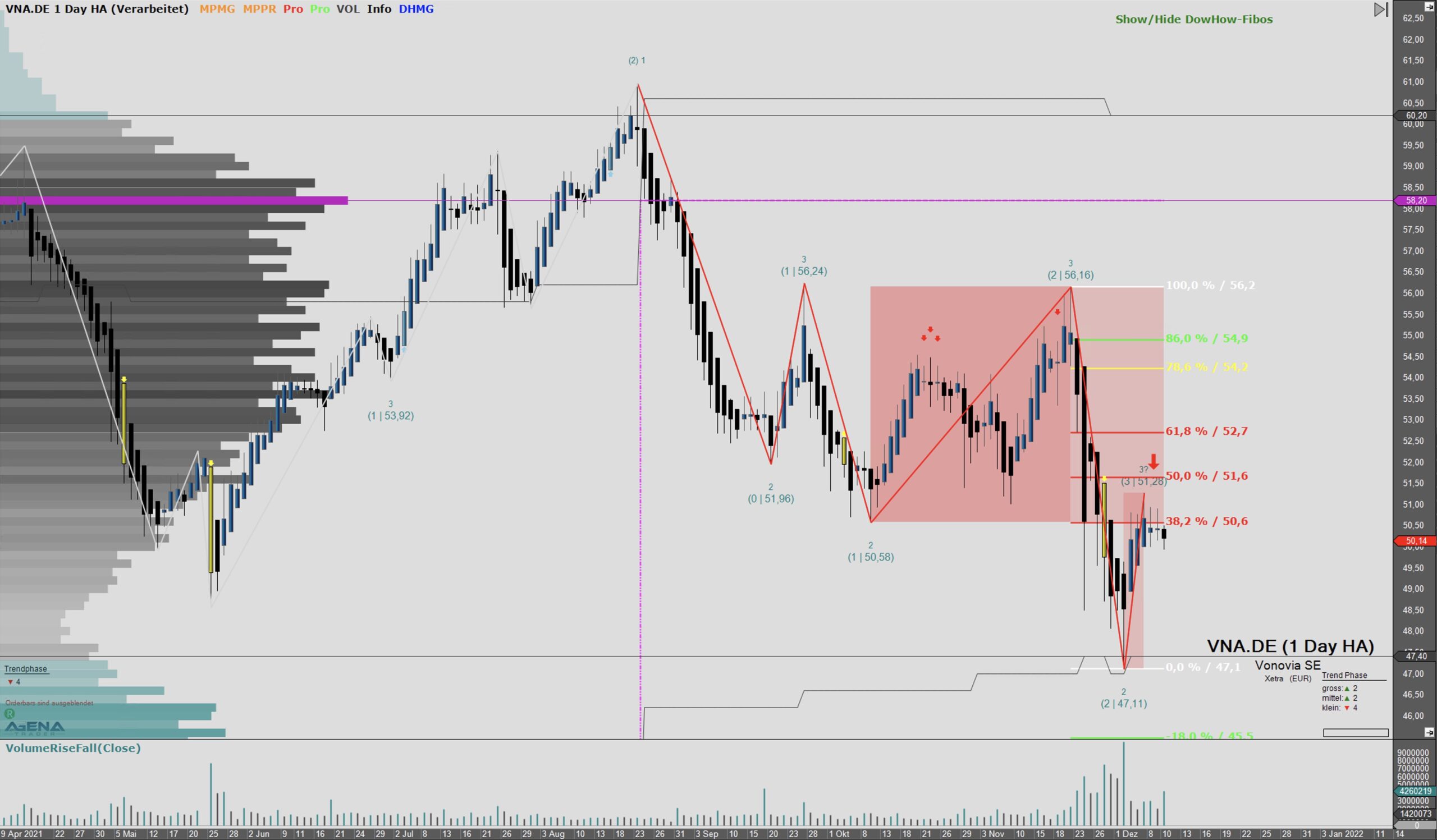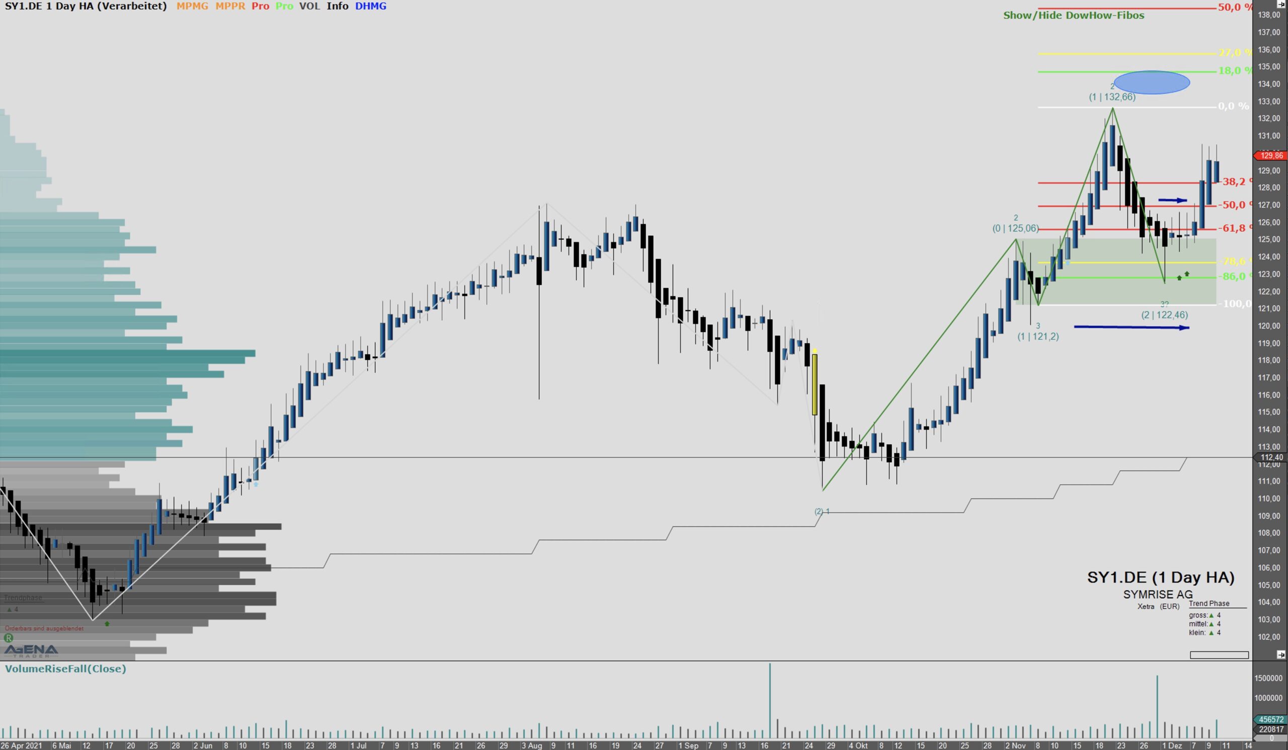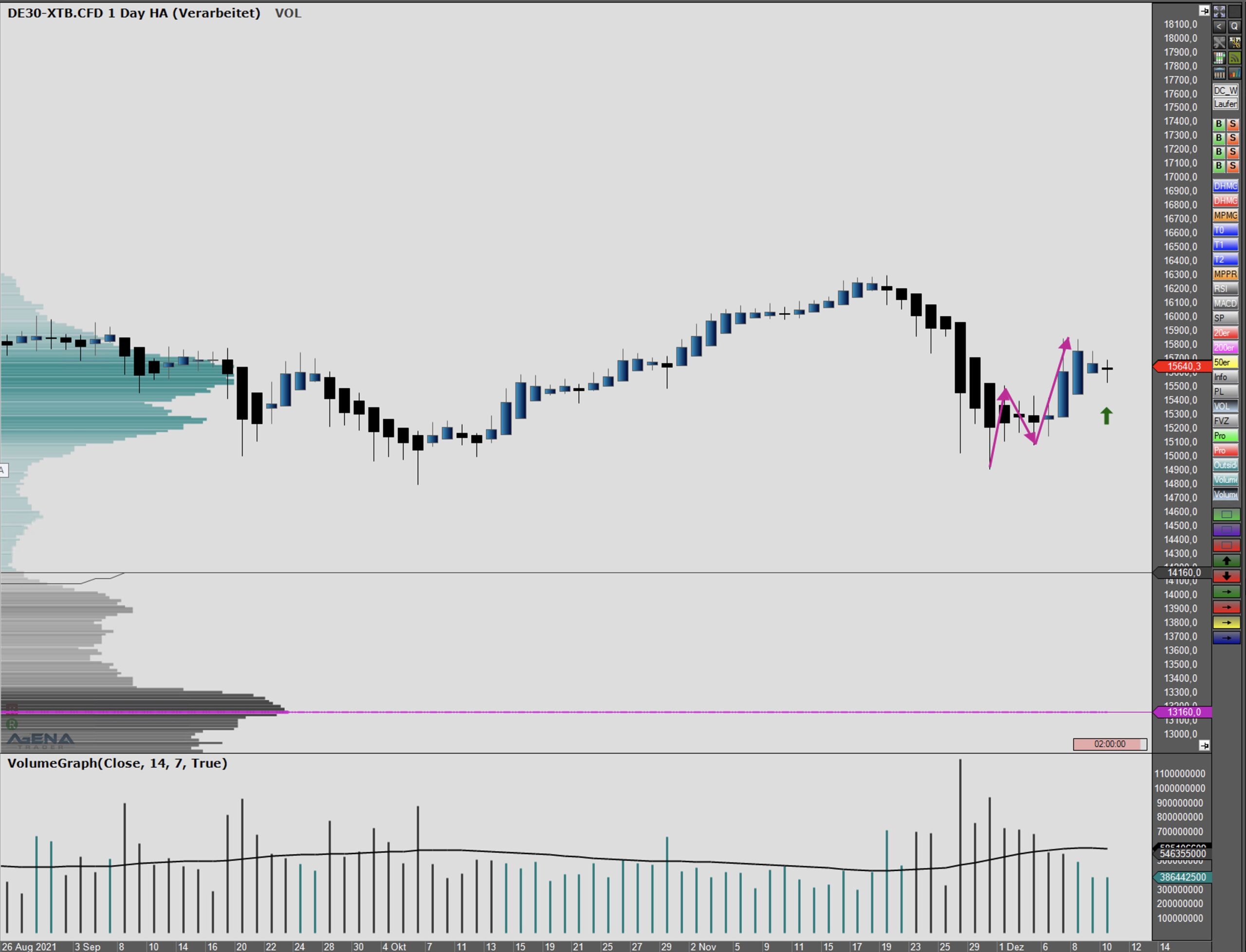 Aus dem 2ten Trendarm heraus sprang unser DowHow Setup an. Derzeitig fängt der Preis an zu korrigieren und wir warten darauf, dass unser Regelwerk erneut greift. Die derzeitige Ausgleichskerze ist mit Vorsicht zu genießen, denn der Preis ist aktuell unter dem Point of Control und der Preis hat fast zu 100% korrigiert. Wir müssen jetzt auf eine saubere Ausgleichskerze warten bzw. auf ein Auspendeln des Preises über dem Point of Control!
